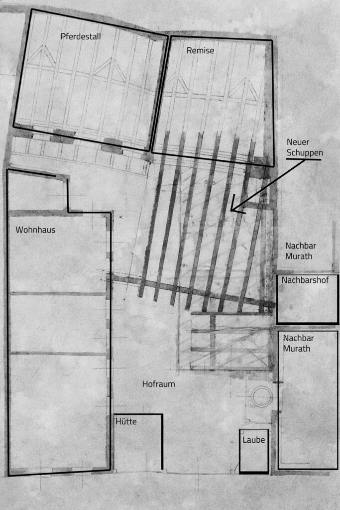Den Muraths geht es vor allem um die Belichtung ihres Hofes. Denn die „„nachbarliche Liegenschaft No. 45 Grazbachgasse hat […] unmittelbar an dem geplanten Schuppen einen kleinen Hofraum von etwa 7m2 Fläche, das nur an Seite der Liegenschaft No. 43 Grazbachgasse von einer 2.5m hohen Abschlußwand, an den übrigen 3 Seiten aber von der hohen Frontmauer des Hauses No. 45 Grazbachgasse abgeschloßen ist.“ Die Errichtung des Schuppens würde die ohnehin eingeschränkte Lichtsituation somit merklich verschlechtern. Aus diesem Grund wird der Bau lediglich als Provisorium genehmigt. Wie bereits dargestellt, sind die Maße des Schuppens daher klar festgelegt.
