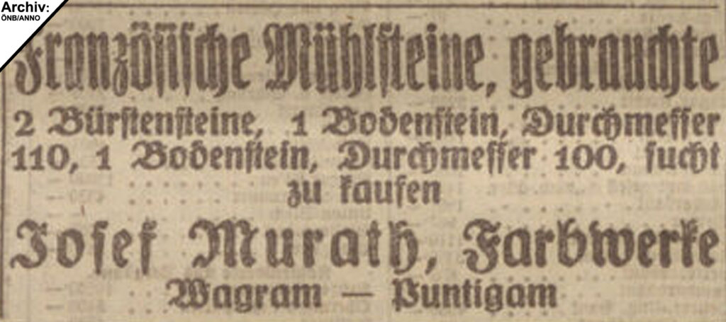 Josef und Anna Murath werden in den Akten als Werksbesitzer in Feldkirchen bezeichnet. Aus diesem Grund wird die Gemeinde Feldkirchen ersucht, die Einladungen zu den erforderlichen Termine im Zusammenhang mit dem Schuppenbau weiterzuleiten. In zeitgenössischen Zeitungen ist von einer Farben- und Pappenfabrik in Wagram zu lesen, die zur Gemeinde Feldkirchen gehört. Josef Murath wird dabei als Fabriksbesitzer genannt. In dieser Fabrik ereignet sich 1924 ein tragischer Unfall, bei dem ein Arbeiter tödlich verletzt wird (u. a. „Grazer Volksblatt“, 10.02.1924).